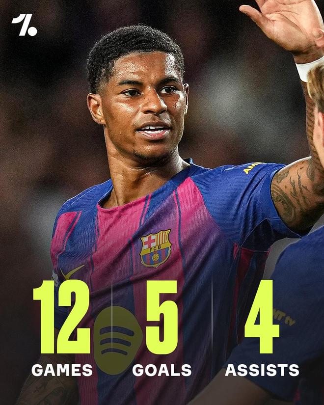 在6-1大胜奥林匹亚科斯的欧冠比赛中破门后,拉什福德12场比赛已经为巴萨打入5球,并有4次助攻,还有2次博点贡献。在欧冠,拉师傅跟姆巴佩和安东尼·戈登并列参与进球最多的球员。他将这场比赛评价为加盟巴萨后发挥最好的一次:「这可能是我在巴萨的最佳表现。我已经准备好为球队发挥出最好的自己。我更喜欢踢边锋,但我不在乎。我打算尽我所能,可以踢任何位置来帮助球队。」