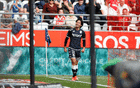 刺激!前后夹击下法甲球员惊天倒勾 进球后拒绝庆祝